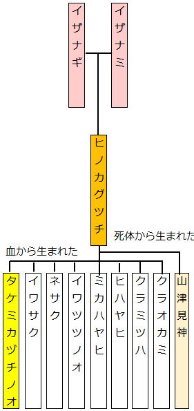 さらに、斬り殺された火之迦具土神の身体の各所から、山々をつかさどる神々が生まれます。